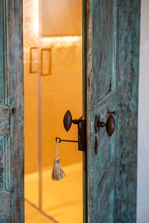 The BLUE ENTRANCE from which you access the rooms SKY and SUN. The oldest part of the house, characterized by plastering and blue/ green finishes that in many parts are still the original ones. Also restored by the master restorers/decorators Franco De Stefano and Michele Pontillo.