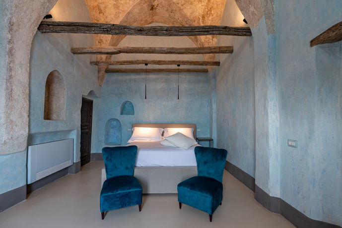 CIELO is the central bedroom with a charming finish, made by master restorers/decorators Franco De Stefano and Michele Pontillo, who were inspired by the blues and greens of the past, of which there is still trace in some parts.